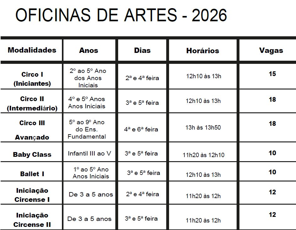 As atividades esportivas e culturais têm previsão de início a partir de fevereiro de 2026, e as matrículas já podem ser realizadas por meio do site do colégio.